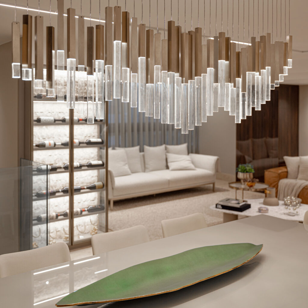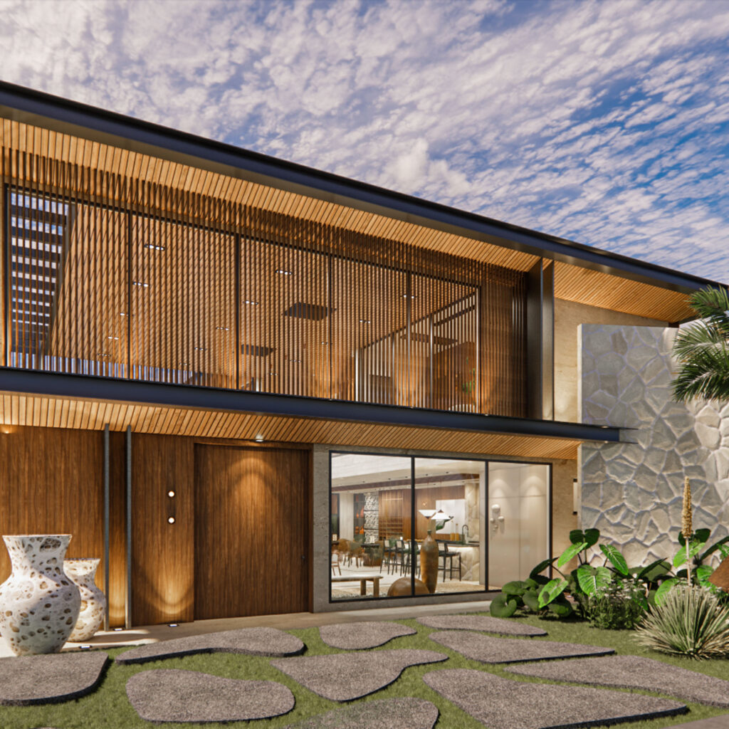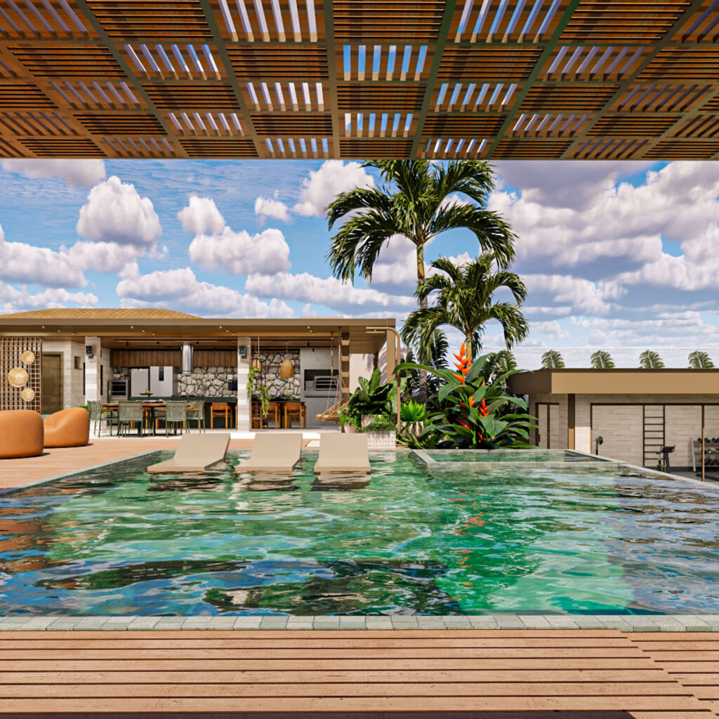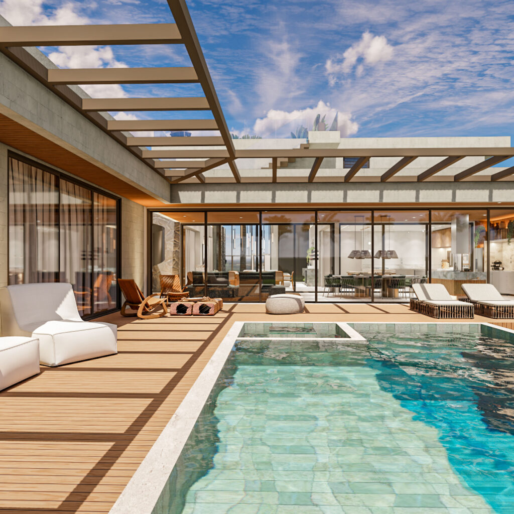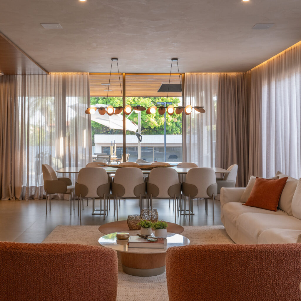 Reflete a essência da arquitetura contemporânea, unindo volumetria imponente, integração com o paisagismo e um equilíbrio preciso entre textura, iluminação e materiais de alta qualidade.