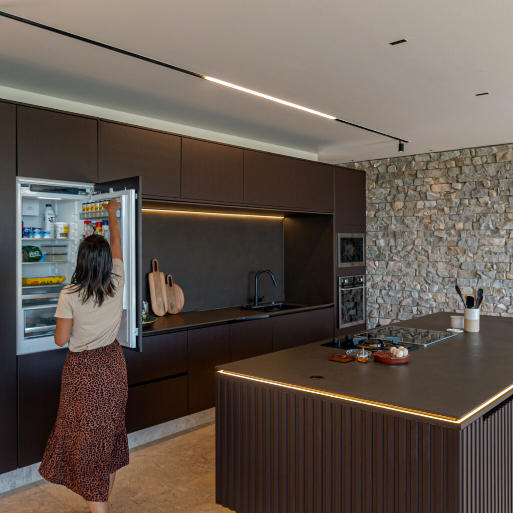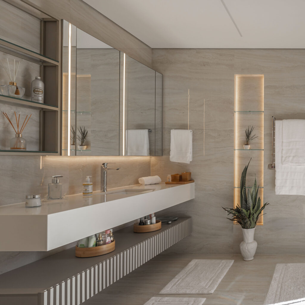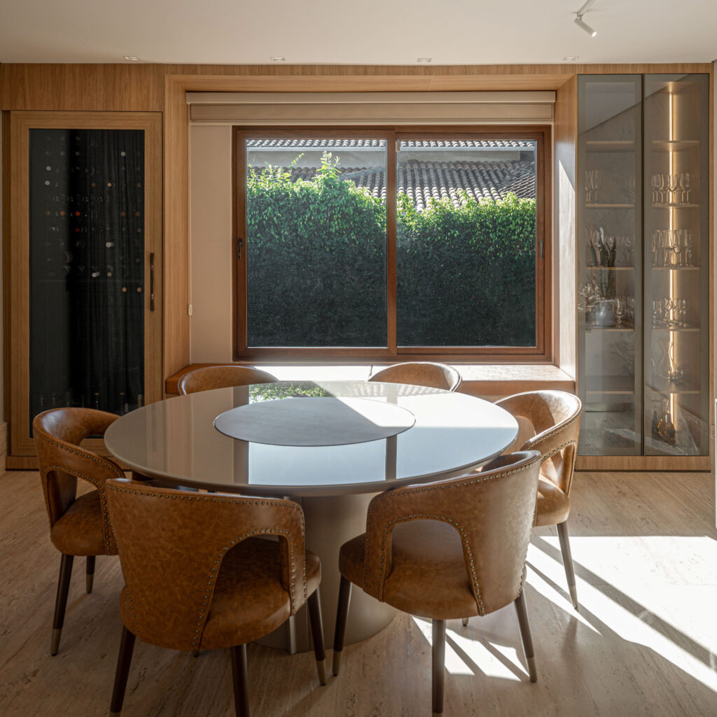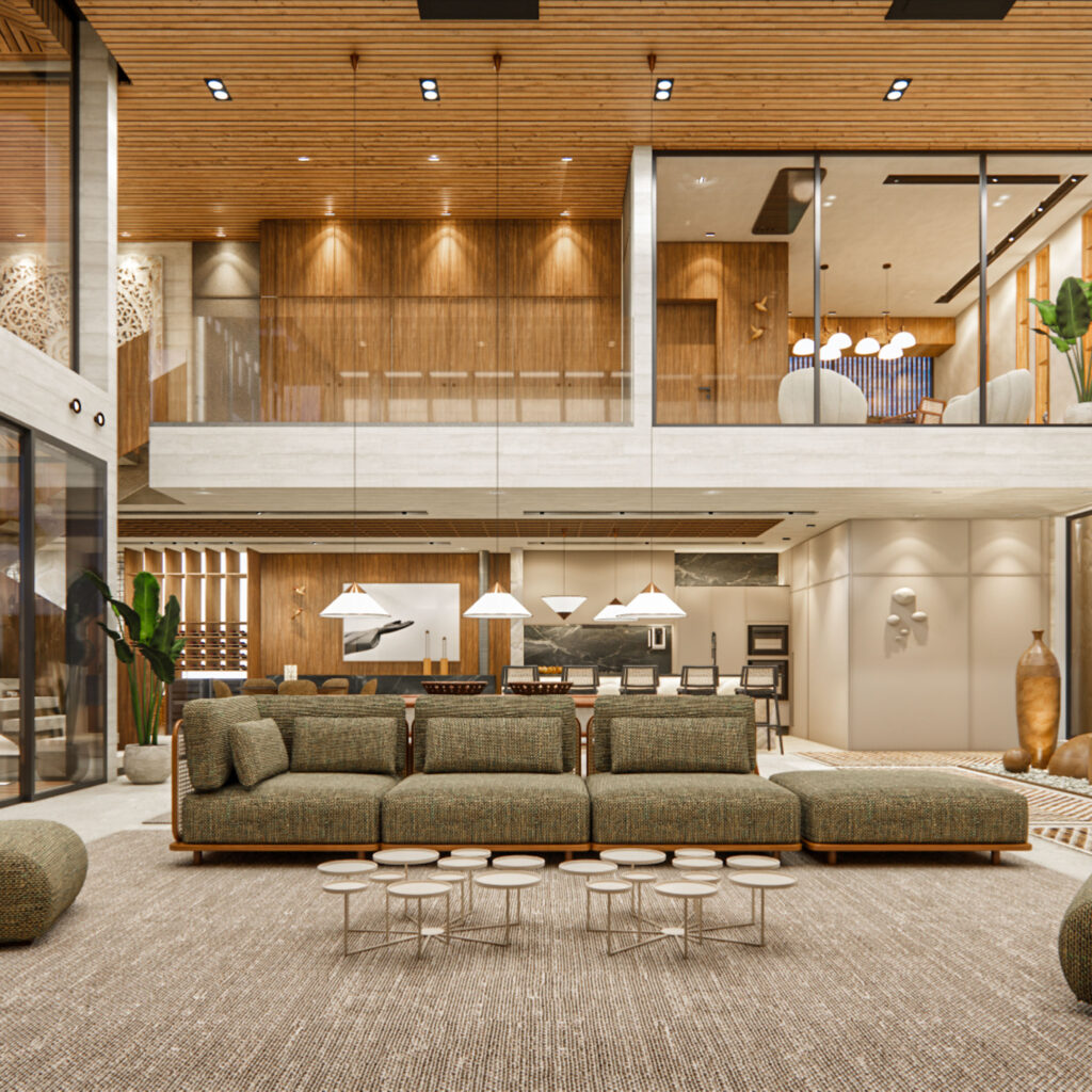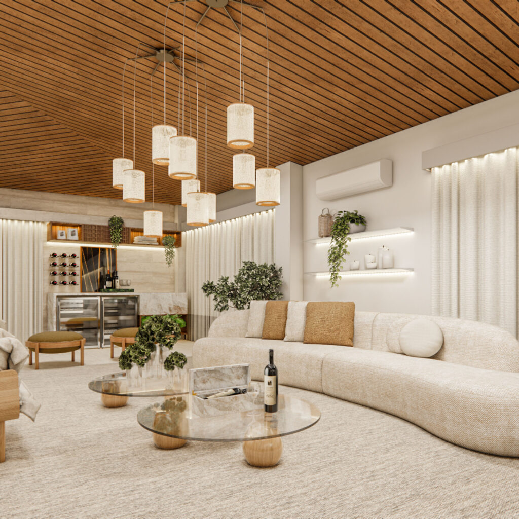 Reflete a essência da arquitetura contemporânea, unindo volumetria imponente, integração com o paisagismo e um equilíbrio preciso entre textura, iluminação e materiais de alta qualidade.